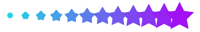 5、图形的大小和颜色都会发生变化,怎么样?混合工具是个很神奇的工具吧,我们再做一些实际的例子再加深一下印象吧;