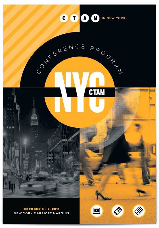 这个会议程序只有黄色的色彩(我们不会计算黑白色),还有几何形状的惊人的现代构图。
