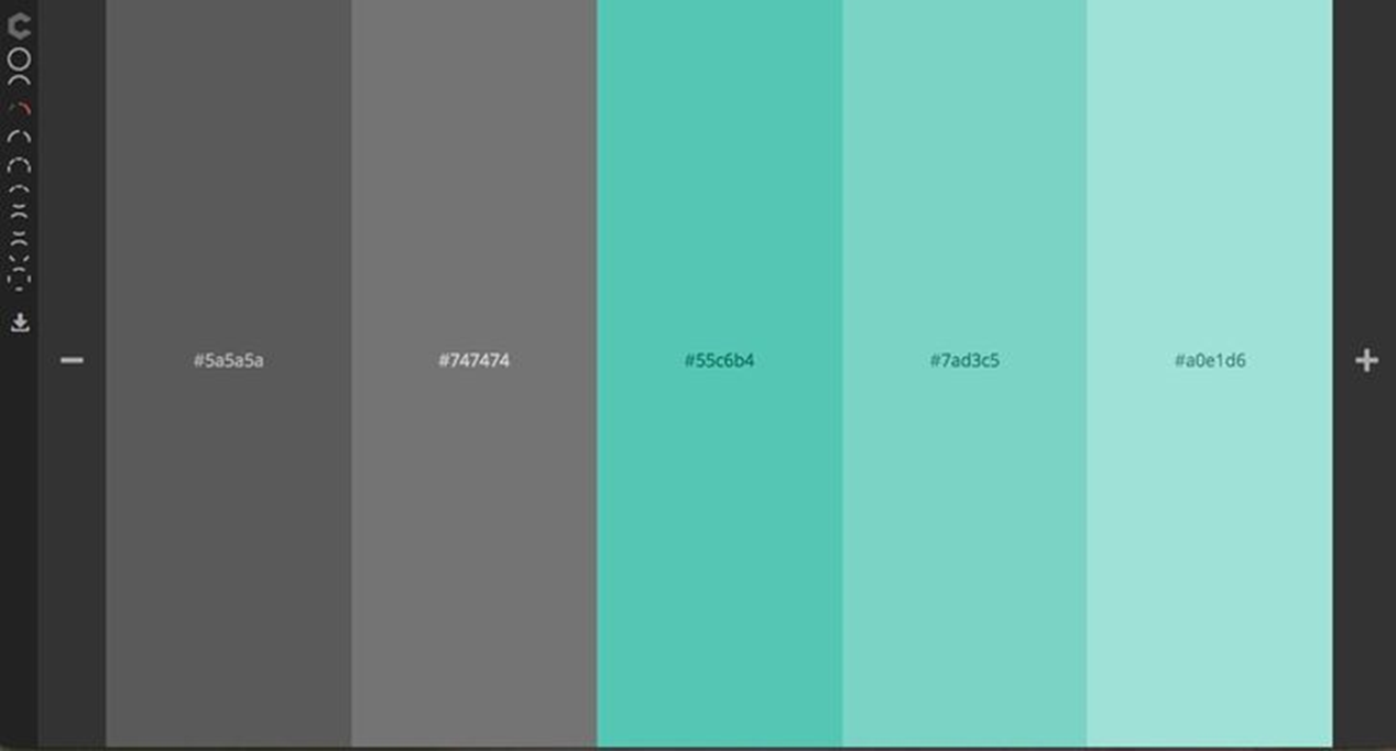 颜色代码调色板生成器简单易用。从左边的面板中挑选一个方案(单色、单色和深灰色,或者单色和浅灰色将是你最好的基于色彩和色度的调色板),然后在各个方向上拖动鼠标,直到看到组合你喜欢。