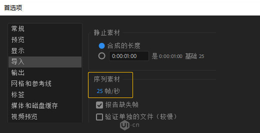 打开“文件”>“项目设置”>“时间显示样式”中找到时间码,将默认基准30改为25,因为默认基准时间码是按照美国的NTSC制式设置的,国内电视和影像设备使用PAL制,所以我们改成25,(其实不改也没什么问题,主要是规范,专业)