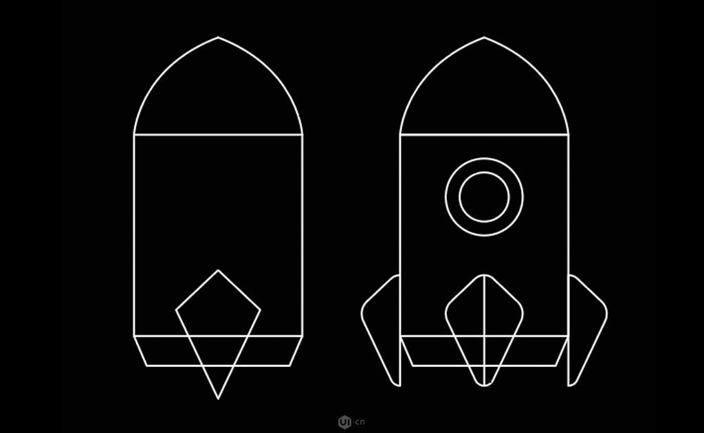 STEP 01 先画出小火箭线稿