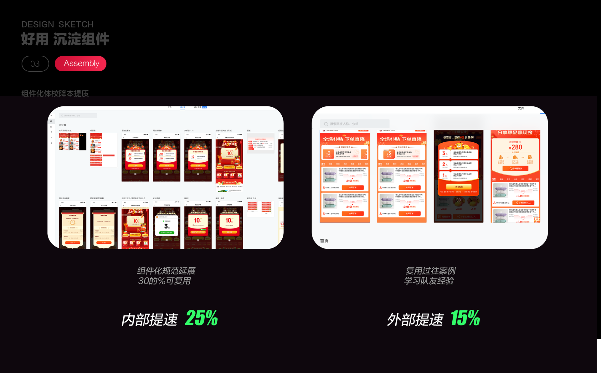 A 合理预期,优先输出。前面提到项目周期较短问题导致视觉/开发工作周期重叠,一度出现开发追着视觉赶的局面。设计侧主要通过主动沟通内容与合理管理下游开发预期方式,以及对整个页面进行梳理规范统一视觉开发,以达到快速协同目的。此方法也可以复用到全链路任何流程。