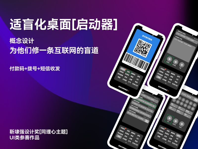中国现今有1700万视力障碍者,这一庞大群体对手机的使用需求也是极大的,但目前各个手机厂商没有站在他们的角度对无障碍进行适配。比如桌面上的APP入口是一个个盲人看不见的图标,进入一个APP后需要一个个寻找需要的功能等等。