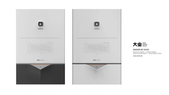 隐藏式面板设计,保证主体外观的一体化。三角的线性元素启到指示操作效果同时体现一种电子产品的科技感,如电脑主机等常见元素跨界融入到壁挂炉家电中。