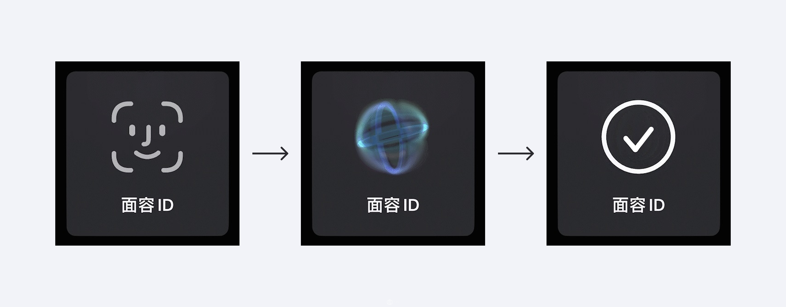 比如苹果的Face ID功能,验证时不仅会震动,还有验证前、中、后的动画效果,最后还会显示成功或失败的图标。