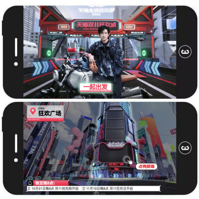 内容简介:该H5以“易烊千玺为你导航”为亮点吸引用户,旨在宣传天猫双11相关活动信息,包括活动的时间节点、直播预告、优惠权益等。用户可通过提示按钮踏上旅程,从而在易烊千玺沉浸式语音导航的伴随下,以第一视角依次游览天猫双11狂欢城的5个站点。每到一站,用户都可进行简单的交互,并保存一张明信片海报。作品最后,用户还可获得一份天猫双11狂欢城攻略长图。