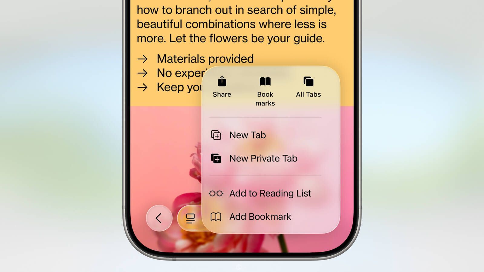 导航在不需要时会消失,在需要时会出现。就像Safari 一样,当您向下滚动时,选项卡将向下折叠成一个小栏,仅显示网站名称。向上滚动会返回完整的 Safari 选项卡栏,以便您可以使用所需的界面按钮。