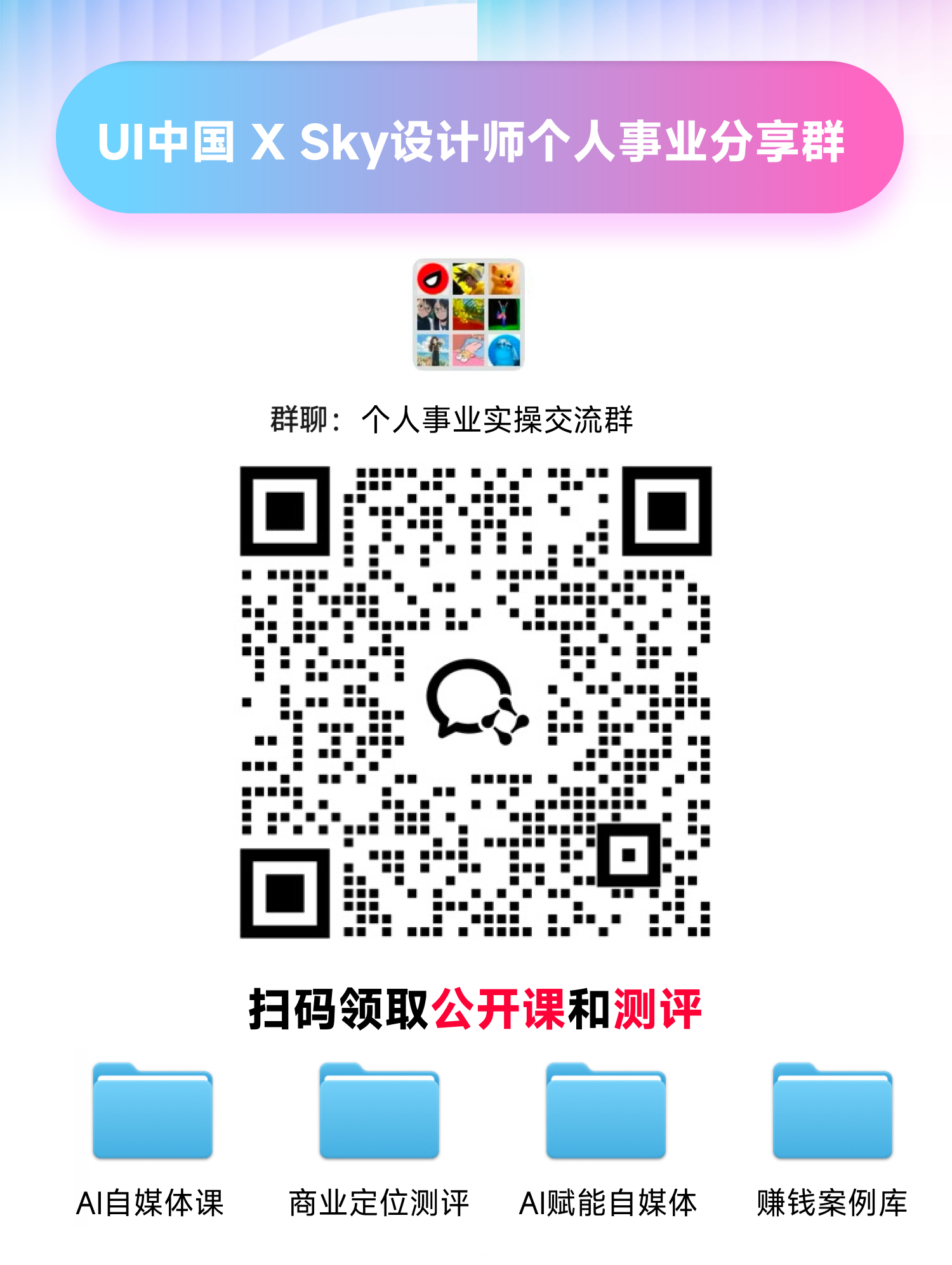 我是Sky,前阿里设计专家,转型创业者,2万付费知识星球创建者,500强AI导师。专注AI赋能IP,打造小而美1人公司。