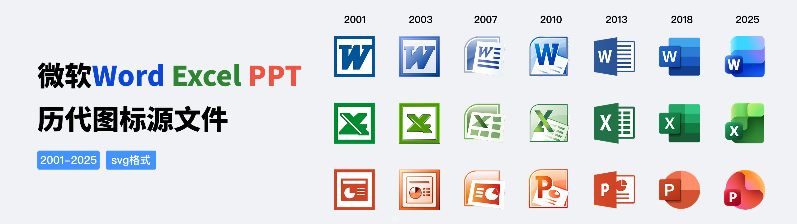 最后为大家整理了一份微软Office历代图标源文件,回复「微软」,即可领取svg图标源文件!