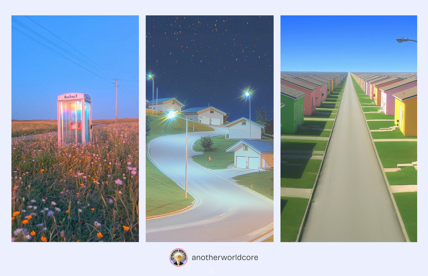 梦核的诞生没有明确的时间节点,主要由互联网社区的集体创作推动。AI 时代的到来,成为了梦核美学最佳的催化剂。以往由于技术限制,一般人很难把梦境中光怪陆离、如梦似幻的场景通过绘画或者作图技能制作出来,因此局限了梦核美学的发展。但这种不符合常理、突破世界逻辑框架的视觉表现力,对于 AI 来说,实在是信手拈来。