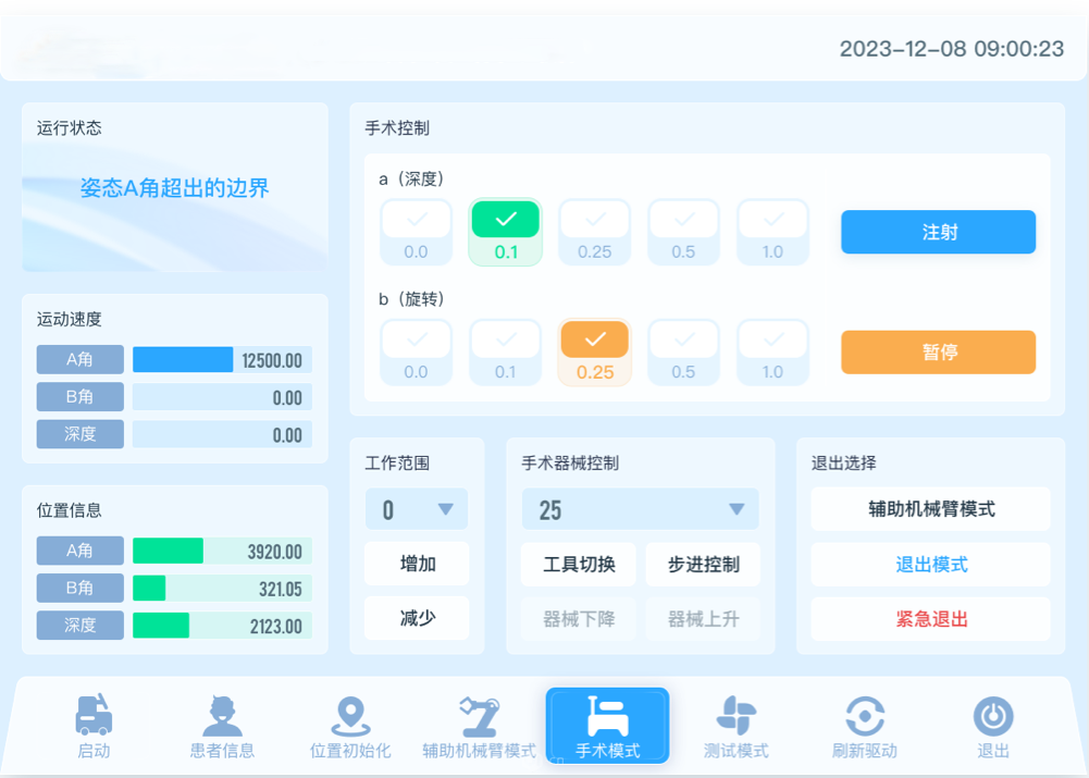 比如一台手术辅助设备的 UI 设计:我们将 “运行状态” 模块置顶(匹配医护术中第一关注项),把机械臂的 A 角、深度参数做成 “进度色块 + 精准数字” 双显模式(避免读数误差),底部功能按钮严格按 “术前准备 - 术中操作 - 术后收尾” 的临床流程排序。落地后,这台设备的医护上手培训周期从 3 天压缩至 4 小时,操作误触率降低 40%,术中参数调整效率提升 30%。